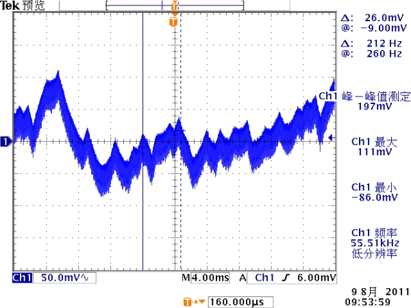 低頻紋波是與輸出電路的濾波電容容量相關。因為開關電源體積的束縛,電解電容的容量不或許無束縛地添加,導致輸出低頻紋波的殘留,該輸出紋波頻率隨整流電路方法的不同而不同。