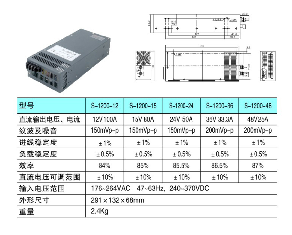 S-1200W單組開關電源